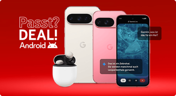 Stand Oktober 2025: Du kaufst ein Google Pixel 10, Pixel 10 Pro, Pixel 10 Pro XL, Pixel 10 Pro Fold, Pixel 9a, Xiaomi 15, 15T, 15T Pro, 15 Ultra, Redmi 15 C 5G, Redmi Note 14 5G oder Redmi Note 14 Pro 5G. Du nimmst im Aktionszeitraum den Tarif GigaMobil, GigaMobil Young oder FamilyCard dazu. Und Du verkaufst Dein Altgerät mit einem Mindestwert von 1 Euro an unseren Partner Recommerce.