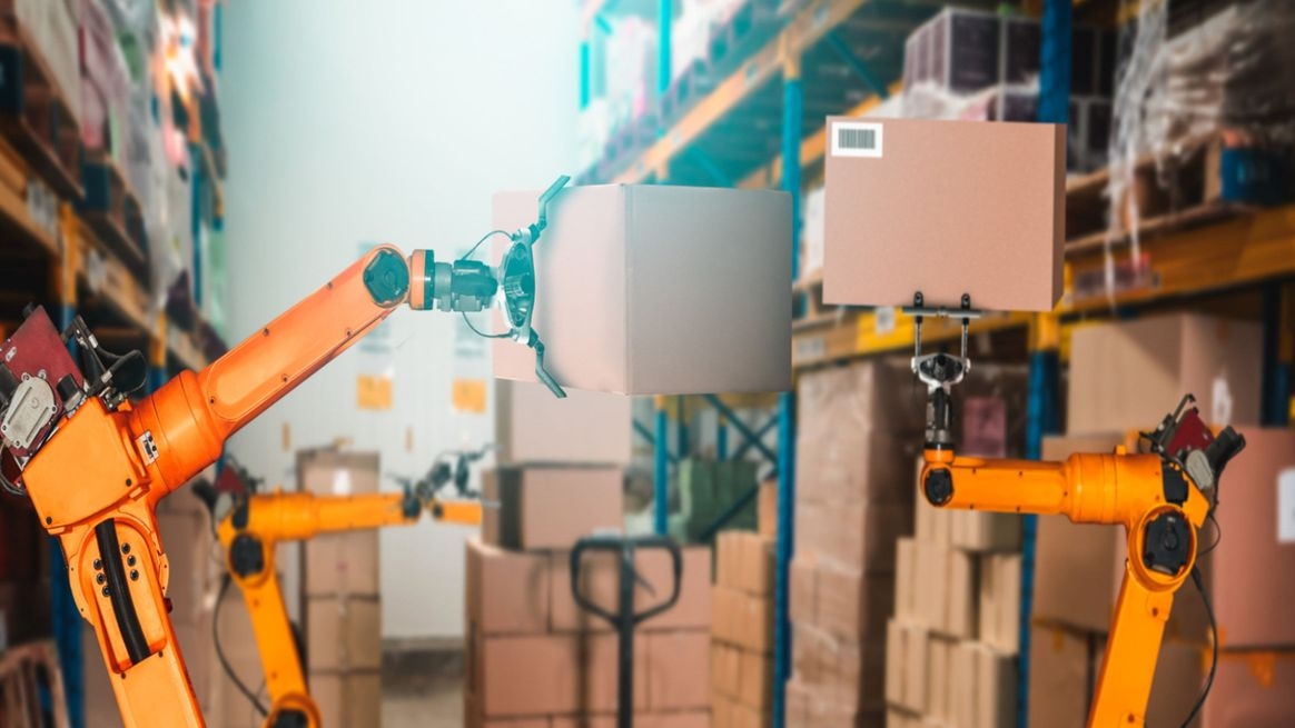 Robotiksysteme in einem Warenlager erhalten ihre Informationen in Echtzeit über das Industrial Internet of Things (IIoT).