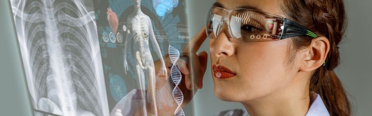 Mixed Reality im Operationssaal: Schon in der Ausbildung lernen Mediziner:innen mit hochmodernen Augmented-Reality-Brillen den menschlichen Körper besser kennen. Im Operationssaal nutzen Ärzt:innen solche 3D-Systeme zukünftig, um Informationen über die Patient:innen direkt in den Operationssaal zu übertragen. Zugleich unterstützt moderne 5G-Technik bei minimalinvasiven Eingriffen, bei denen Patient:innen besonders schonend operiert werden.