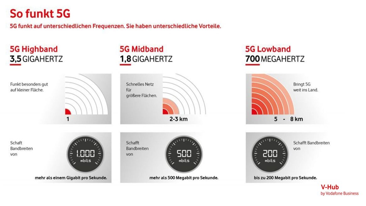 High-, Mid- und Lowband: Durch die Aufteilung des Frequenzbereichs funktioniert die 5G-Versorgung sowohl in der Stadt als auch auf dem Land.