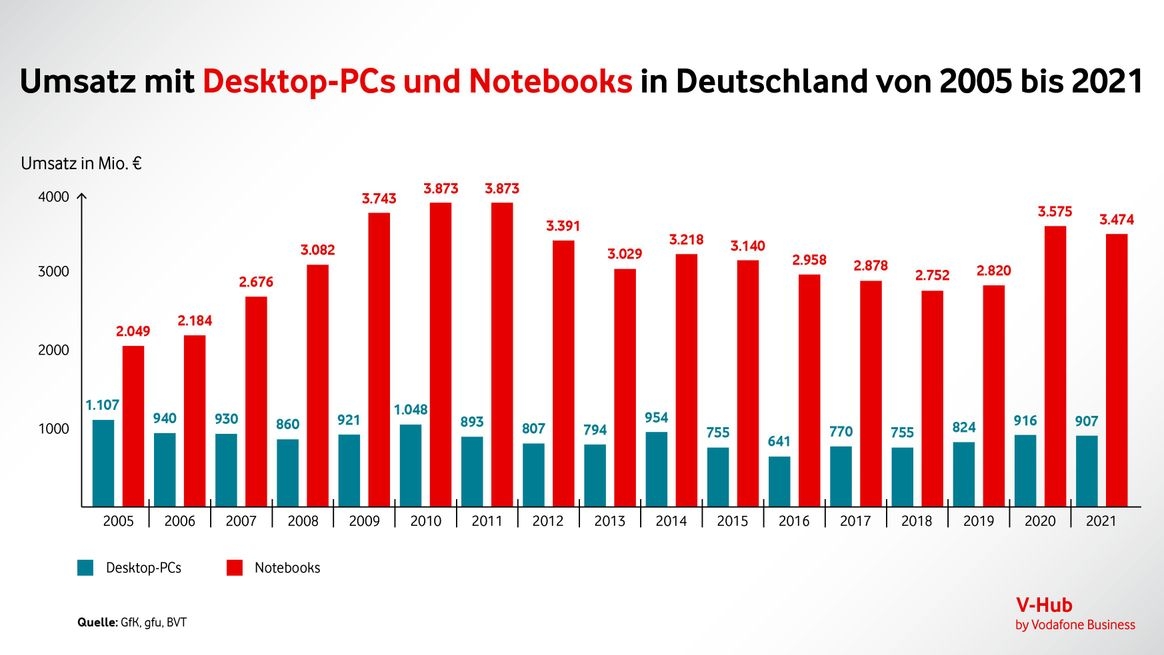 Für die Arbeit im Homeoffice setzen die meisten Unternehmen auf Laptops, was den Umsatz der letzten zwei Jahre nochmals deutlich steigerte.