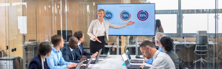 In der höchsten Entwicklungsstufe laufen alle Unternehmensprozesse automatisiert und datengetrieben ab. Künstliche Intelligenz (KI) wertet Daten auf Basis erlernter Muster aus und trifft bestimmte Entscheidungen autonom. Die Jahresplanung kalkuliert beispielsweise eine intelligente Software, wobei sie automatisiert Zielvorgaben sowie ökonomische Rahmenbedingungen, jahreszeitliche Schwankungen oder aktuelle Markttrends berücksichtigt. Produktion und Wertschöpfung sind vollständig automatisiert. Per Internet-of-Things (IoT) vernetzte Roboter arbeiten selbständig. Die Kommunikation mit den Kund:innen erfolgt fast ausschließlich über Chatbots. Viele Arbeitsgruppen im Unternehmen sind als virtuelle Teams an unterschiedlichen Standorten organisiert. Entsprechend sind Meetings in der Regel virtuell. Mittels „Unified Communications & Collaboration“ (UCC) kommunizieren die Teams miteinander. Unternehmen dieser Entwicklungsstufe heben sich durch schnellere Anpassungsfähigkeit, Kreativität und Innovationskraft von ihrem Wettbewerb ab. Kostensparende digitale Prozesse senken Stückkosten und entlasten Mitarbeiter:innen von zeitraubenden Routineaufgaben. So haben diese mehr Zeit für ihre höherwertige Aufgaben. Das Unternehmen analysiert auch weiterhin alle seine Geschäftsprozesse auf zusätzliches Digitalisierungspotenzial.