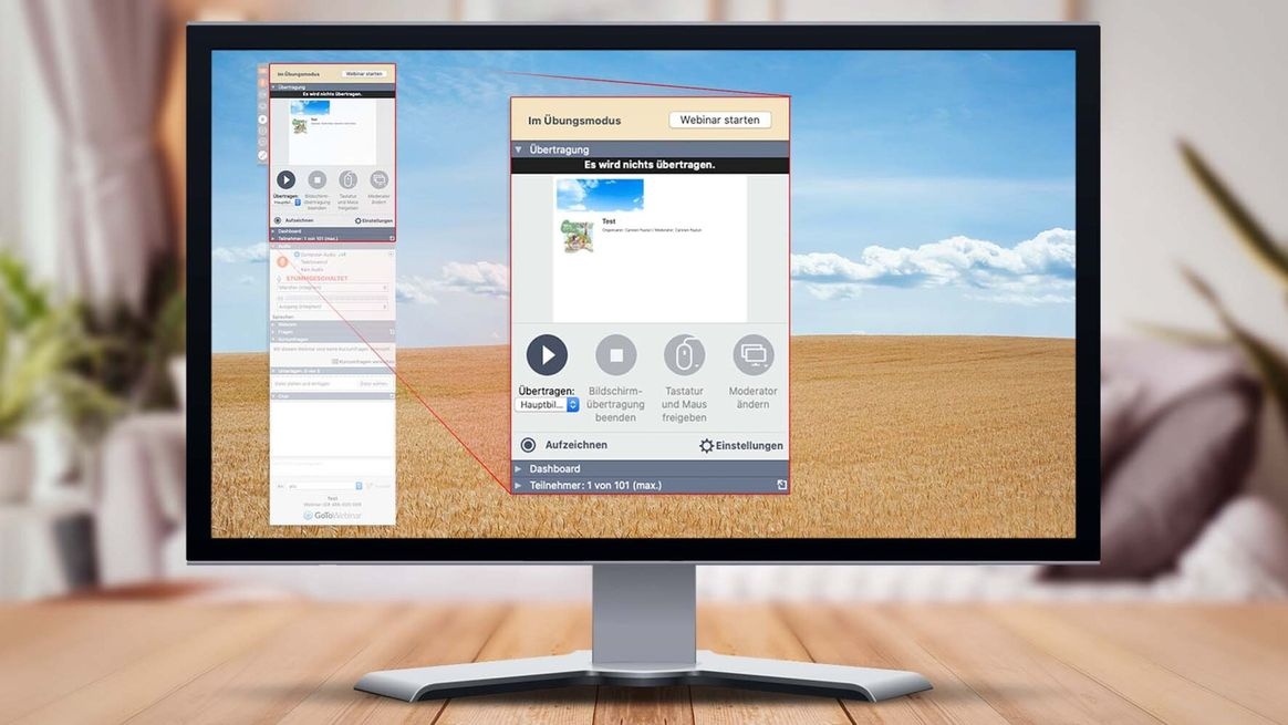 Wenn Sie zum ersten Mal ein Webinar veranstalten, sollten Sie es nicht unvorbereitet starten. Fürs Training bietet GoToWebinar den Übungsmodus. Den sollten Sie besonders nutzen, wenn Sie verschiedene Referenten und einem Moderator einsetzen möchten.