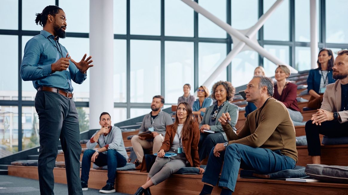 In einer virtuellen „Town Hall“ (englisch für Stadthalle) können sich alle Führungskräfte und Mitarbeiter:innen zu virtuellen Veranstaltungen treffen, um gemeinsam Videopräsentationen anzusehen oder für einen Frage-und-Antwort-Austausch zu einem vorher vereinbaren Thema. Hier können Führungskräfte beispielsweise die neue Geschäftsstrategie vorstellen oder eine neue Produktlinie intern erstmals präsentieren.