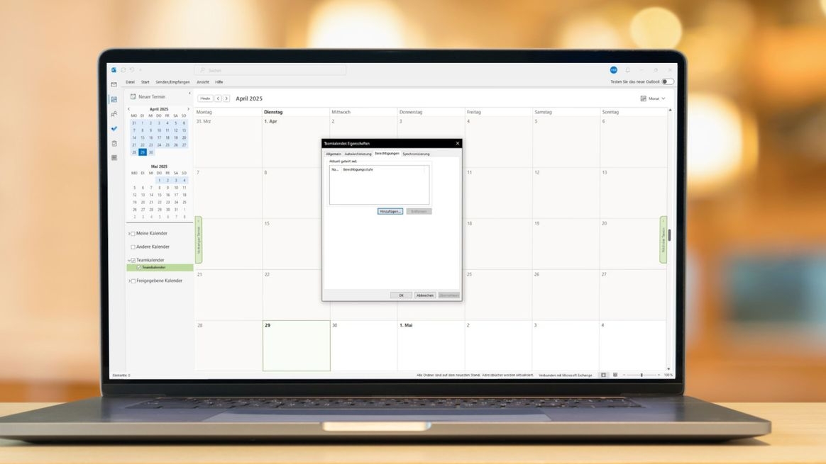 Outlook bietet Ihnen neben dem Erstellen einer Kalendergruppe mit darin integrierten Einzelkalendern verschiedener Personen einen weiteren einfachen Weg, um Ihren Kalender mit anderen Personen im Unternehmen zu teilen. Hierbei geben Sie Ihren persönlichen Kalender frei – oder einen neuen Kalender, den Sie eigens als Teamkalender anlegen.