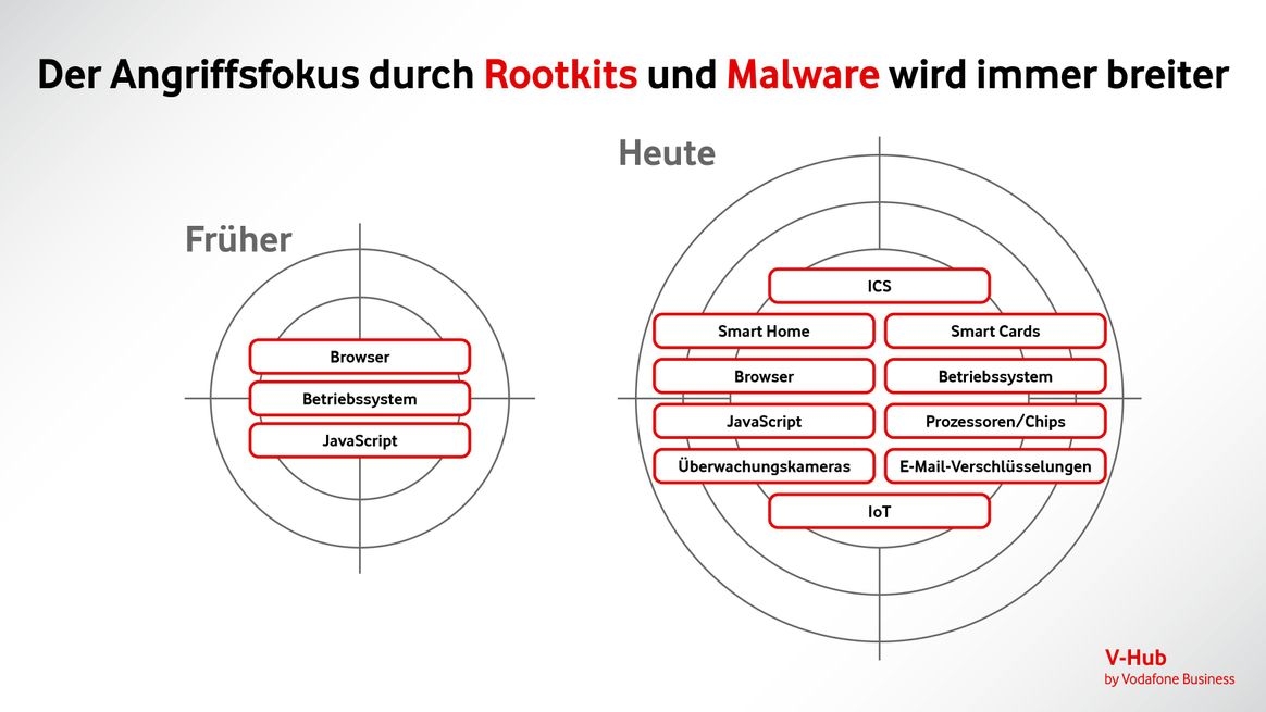 Die sogenannte Firmware ist eine auf niedriger Hardwareebene arbeitende Software. Im IT-Bereich findet sich Firmware zur Steuerung von Systemen und Hardware beispielsweise auf Grafikkarten, in Routern, in Hubs oder anderen Netzwerk- und Rechnerkomponenten. Häufig sind diese Komponenten auch über das Netzwerk ansprechbar. Einige Rootkits nutzen diese Vernetzung aus, um sich in der Firmware zu verstecken. So können sie über die kompromittierten Systeme Malware nachladen oder den Datenverkehr manipulieren.