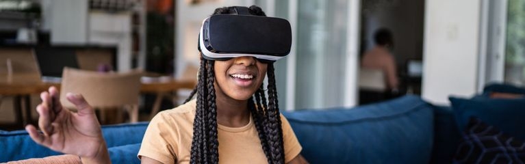 Auf dieser Ebene geht es um den Zugang zum Metaverse und die Darstellung der Inhalte. Hierbei kommen neben Geräten wie VR- und AR-Brillen auch Werkzeuge für die Haptik- und Bewegungssteuerung zum Einsatz. 2D-Geräte wie Smartphone oder TV-Geräte spielen nur noch eine untergeordnete Rolle.