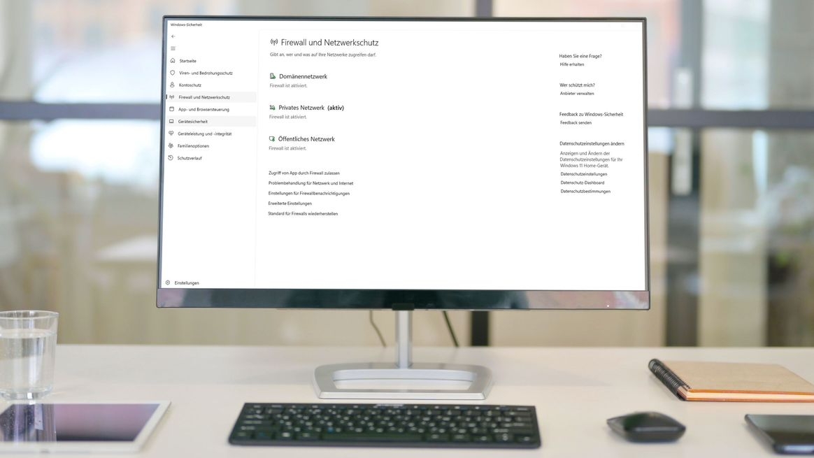 Ransomware, DDOS-Attacken, Infizierung mit Malware, Phishing-Angriffe und Cross-Site-Scripting – die Schadenssumme durch Cyberangriffe für die deutsche Wirtschaft steigt weiter und beläuft sich 2025 bereits auf 289 Milliarden Euro (Stand: Oktober 2025; Quelle: Bitkom Research). Ziele sind hierbei ebenso Unternehmensnetzwerke als auch die Rechner von Mitarbeiter:innen im Homeoffice. Die Windows-Firewall kann als Teil des bordeigenen Sicherheitscenters dabei helfen, Gefahren abzuwehren.