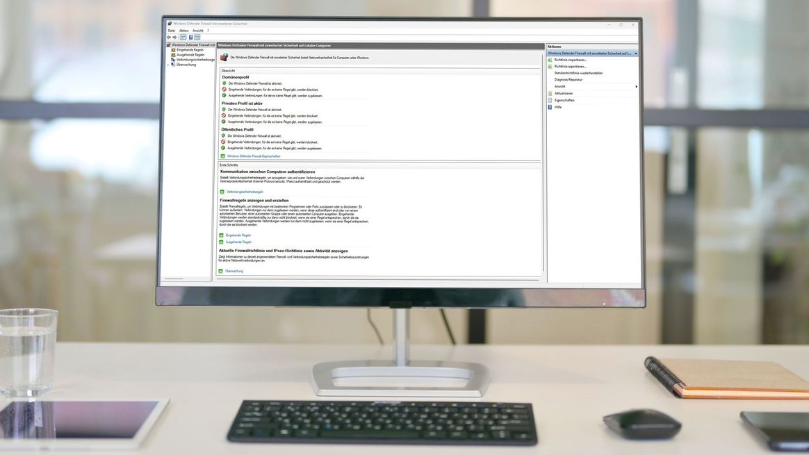 Heute ist sie unter der Bezeichnung Windows Defender Firewall Teil eines Gesamtsystems zum Bedrohungsschutz – und bietet so Computern (auch) in Unternehmen eine erste Verteidigungslinie gegen unautorisierte Zugriffe und Schadsoftware. Die Firewall unterstützt sowohl Profile von Domänen als auch von privaten und öffentlichen Netzwerken. Administrator:innen können also über Gruppenrichtlinien zentrale Einstellungen vornehmen, etwa zur Freigabe von Ports oder zur Einschränkung von Anwendungen.