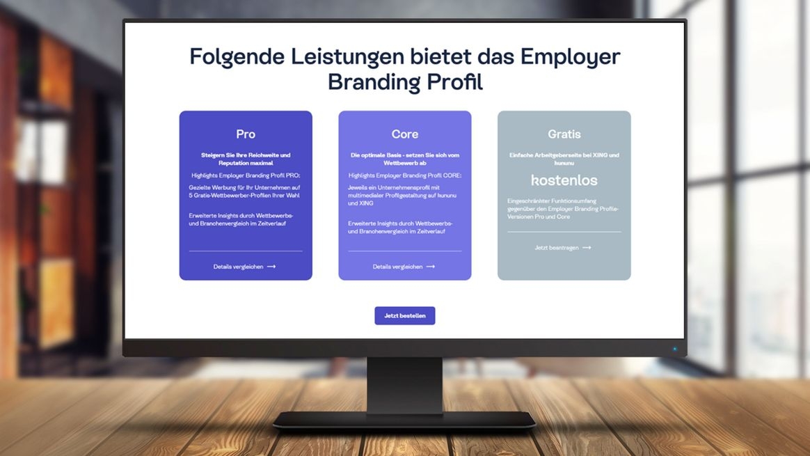 Noch mehr Möglichkeiten, mit denen Sie für Aufmerksamkeit für Ihr Unternehmen sorgen können, bietet das kostenpflichtige Employer-Branding-Profil. Damit können Sie sich als attraktives Unternehmen gleichzeitig auf den beiden beliebten deutschsprachigen Karriereplattformen XING und kununu präsentieren. Hier ist die Platzierung von Bildern, Videos und Audiodateien möglich. News Ihres Unternehmens können Sie automatisch in einen RSS-Feed einbinden lassen.
