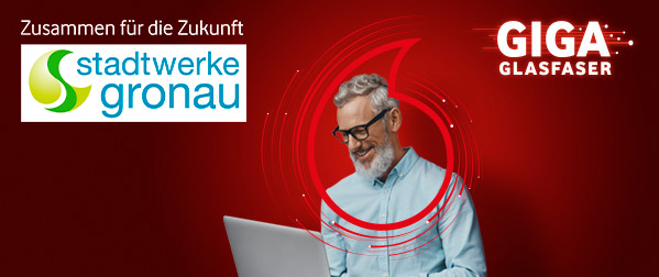Seit dem 3. November 2021 sind wir Kooperationspartner für den Glasfaser-Ausbau in Gronau und Epe. Die Arbeitsteilung ist leicht beschrieben: Die Stadtwerke kümmern sich um die Planung und den Bau sowie die spätere Wartung des Netzes. Vodafone pachtet das Netz und übernimmt den aktiven Betrieb und die Vermarktung der Produkte gegenüber den Endkunden sowie die überregionale Netzanbindung außerhalb Gronaus.