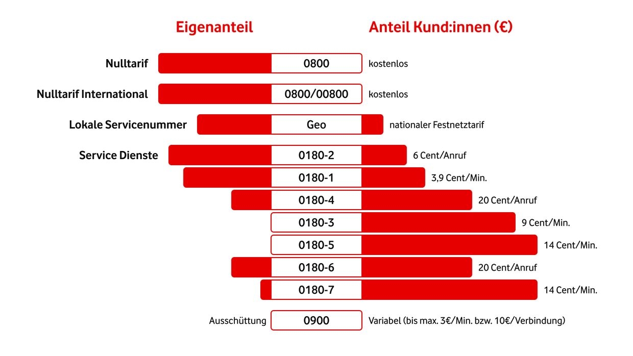 In der Regel erfolgt die Beantragung einer Service-Hotline online bei der Bundesnetzagentur. Brauchen Sie für Ihr Unternehmen eine lokale Service-Nummer, die wir auch aus Ihrem Vodafone-Sprachanschluss herauslösen können, dann bekommen Sie diese direkt von uns. Sprechen Sie mit uns über Ihre Pläne – wir realisieren eine maßgeschneiderte Lösung für Sie, um den Kundensupport auf das nächste Level zu bringen.