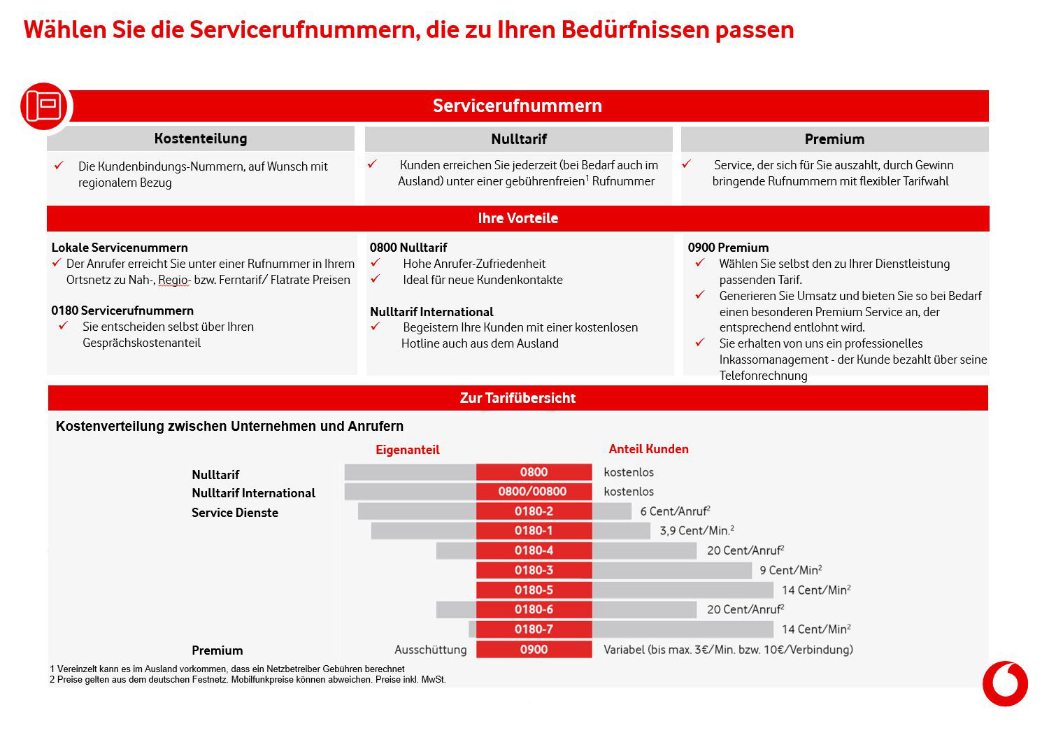 Welche Service-Rufnummern bietet Vodafone an und was kosten sie den Anrufer? -