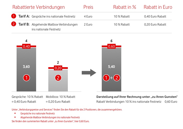 Jeder Teilnehmer sieht hier seine Basispreise, Verbindungspreise, Sonstiges, Rabatte und den Gesamtbetrag.