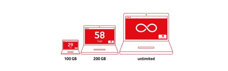 Im Tarif GigaCube Zuhause 100 haben Sie pro Rechnungszeitraum 100 GB, im Tarif GigaCube Zuhause 200 sowie im Tarif GigaCube Flex 200 GB Highspeed-Datenvolumen im deutschen Vodafone-Netz.