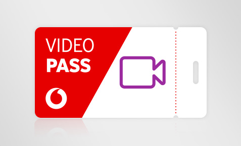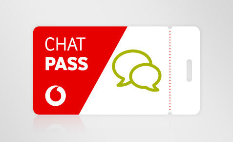 Vodafone SIM-Karte mit goldenem Chip auf rotem Hintergrund, umgeben von kleinen roten dekorativen Kugeln.