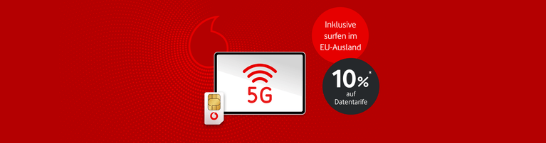 5G: Sie können im Inland die 5G-Technologie nutzen. 5G ist in den aktuellen Tarifen Business Prime, Red Business Prime, Red Business Data (2020), Smart Business Data und Business Select schon kostenlos integriert. 5G ist schon in 5.200 Städten und Gemeinden verfügbar (Stand Dezember 2023). Sind Sie in einem Gebiet unterwegs, das mit 5G erschlossen ist, können Sie im 5G-Netz surfen. Sie brauchen dafür ein 5G-fähiges Gerät. An anderen Standorten surfen Sie wie gewohnt mit der für Sie maximal verfügbaren Geschwindigkeit (4G|LTE Max). Wir bauen 5G schrittweise aus. Den aktuellen Stand finden Sie auf vodafone.de/netz.