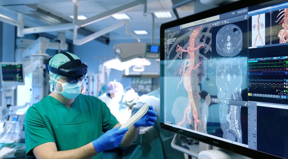 Eine Anwendung, die die Partner am UKSH erproben wollen, ist Augmented Reality. In der 5G-Klinik in Schleswig-Holstein könnten zum Beispiel Bilder aus der Computertomographie (CT) hochauflösend an eine AR-Brille übertragen werden. CT-Aufnahmen von Organen und Knochen erscheinen dann in der erweiterten Realität als komplexe, interaktive 3D-Darstellungen, was eine noch detailliertere Diagnostik unterstützt. Echtzeit-Konnektivität vereinfacht aber auch die Zusammenarbeit zwischen den Mediziner:innen und ermöglicht die Nutzung von hochauflösenden Hologrammen. Expert:innen an verschiedenen Standorten könnten künftig in einem virtuellen medizinischen Netzwerk gemeinsam Befunde auswerten und Organstrukturen bis ins kleinste Detail analysieren. Ebenso kann Augmented Reality Medizin-Studierende besser auf die Arbeit im Krankenhaus vorbereiten. Mit einer AR-Brille können sie von überall den besten Ärzt:innen über die Schulter schauen und von ihnen lernen.