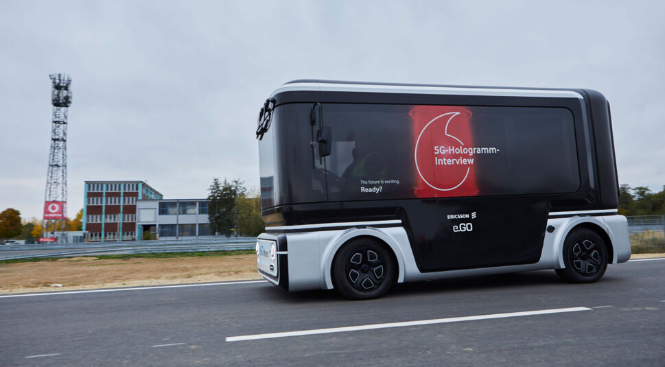Es ist 11 Uhr vormittags. Der elektrische Kleinbus e.GO Mover fährt vernetzt im 5G Mobility Lab in Aldenhoven über das 400.000 Quadratmeter große Testgelände. Vodafone Deutschland-Chef Hannes Ametsreiter hat zum Gespräch über die kommende Mobilfunkgeneration 5G eingeladen. Ins 5G Mobility Lab. In den fahrenden Elektrokleinbus e.GO Mover. Es ist ein Gespräch der besonderen Art. Denn Hannes Ametsreiter selbst ist nicht vor Ort. Du fragst Dich, wie das möglich sein kann?