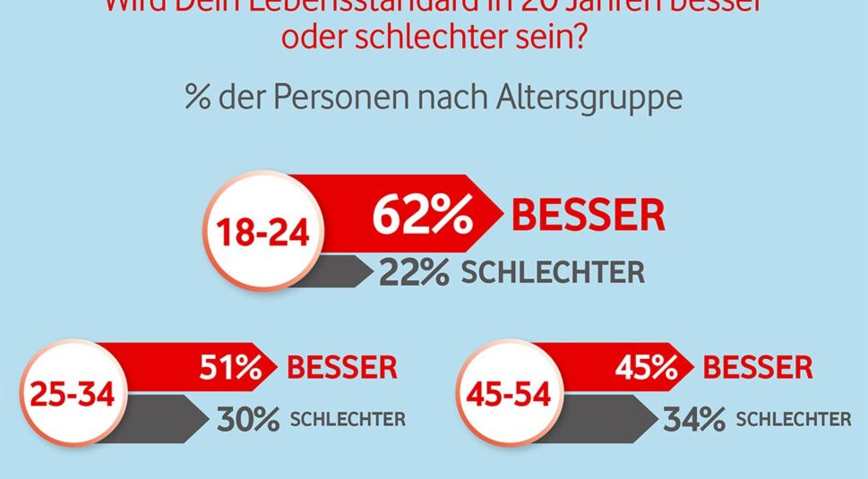 Die Idee zur neuen Markenbotschaft kommt natürlich nicht von ungefähr. Sie basiert auf Ergebnissen umfangreicher Forschungs- und Konzepttests, an denen sich fast 30.000 Personen in 17 Ländern beteiligten. Dafür wandte sich die Vodafone Group unter anderem an das Meinungsforschungs-Institut YouGov, das rund 13.000 Menschen in 14 Ländern bewerten ließ, wie optimistisch sie in die Zukunft blicken. Die erfreuliche Grundhaltung: Befragte aller Altersgruppen glauben, dass innovative Technologien überwiegend positiven Einfluss auf ihr Leben haben werden. Besonders optimistisch zeigten sich die 18- bis 24-Jährigen, bei denen 62 Prozent überzeugt sind, dass sich ihr Lebensstandard im Vergleich zu heute verbessern wird.