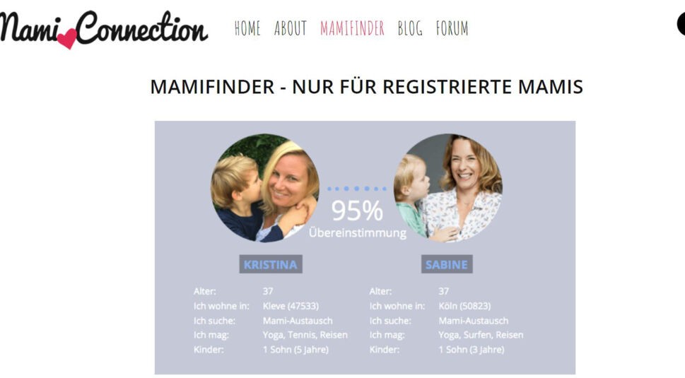 MamiConnection hält genau das, was der Name verspricht: Du kannst andere Mamis in Deiner Nähe finden und Dich mit der Community austauschen. Dafür füllst Du Dein Profil nach der kostenlosen Registrierung mit persönlichen Infos wie Deinen Interessen, Tagesabläufen und natürlich Deiner Mama-Situation.