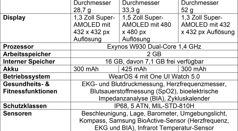 Die wichtigsten Merkmale aus den Datenblätter der beiden neuen Samsung Galaxy Watch6-Modelle zeigen wir Dir noch einmal in der Tabelle: