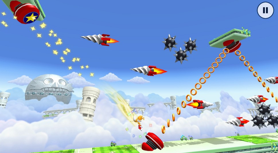 Einsteiger lassen sich von den detaillierten Levels und dem ganzen Gewusel vielleicht schneller ins Bockshorn jagen. Da sind dann mal 800 Ringe futsch, weil man eine Klippe nicht erwischt hat und es juckt Dich im Finger. Hast Du den Budenzauber aber erst einmal durchschaut, merkst Du schnell, dass viele Passagen kaum Eigenleistung erfordern. Oft beschränkt sich die Ideallösung tatsächlich auf ein, zwei, drei Taps an der richtigen Stelle, damit Dein Charakter von einem zum nächsten Punkt katapultiert wird. An dieser Stelle verfliegt dann auch der Frust wieder.