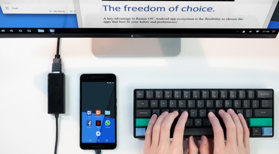 Mit Remix OS brachte der chinesische Software-Hersteller Jide im letzten Jahr ein waschechtes Android-Betriebssystem für Desktop-PCs und Laptops heraus. Dem gelungenen Hieb in Richtung Chrome OS soll nun eine Version folgen, die Microsofts Continuum Kontra geben könnte. Denn mit Remix OS for Mobile kannst Du Dein Android-System vom Smartphone ganz einfach auf eine externe Desktop-Oberfläche übertragen.