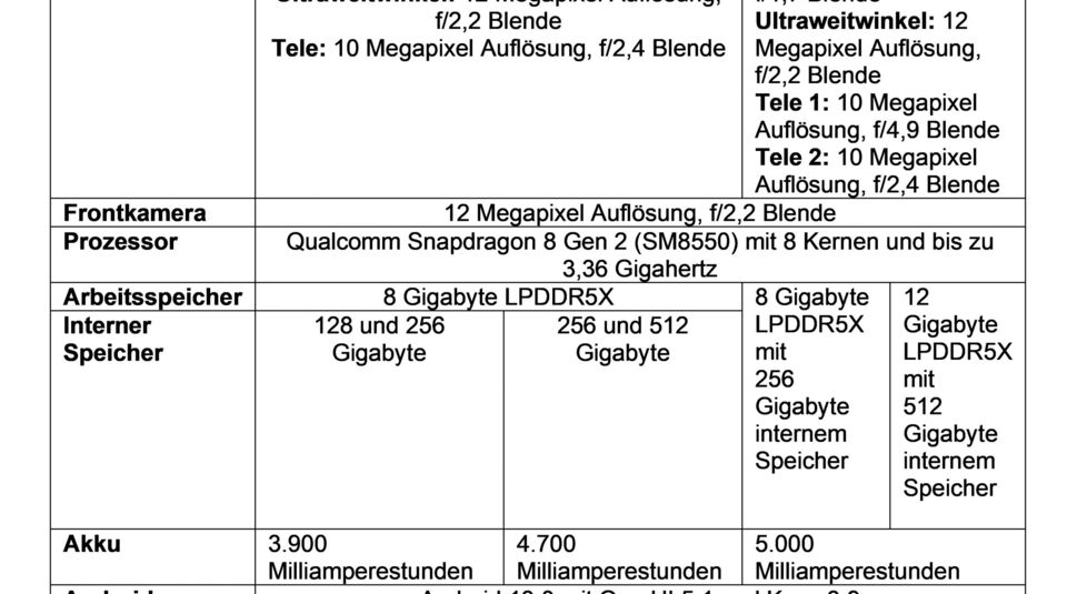 Du möchtest es ganz genau wissen und alle wichtigen technischen Daten zu den drei Samsung Galaxy S23-Modellen im Überblick haben? Hier kommt die Tabelle: