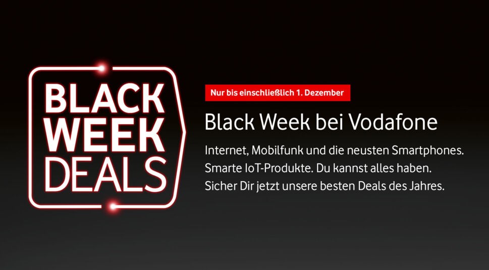 Vodafone hat für Dich zum wohl spektakulärsten Schnäppchen-Tag des Jahres, dem Black Friday am 26. November, gleich zwei Wochen lang die Black Week Deals am Start – vom 18. November bis einschließlich 1. Dezember. Nutze Deine Chance bei der Vodafone Black Week, um die besten Deals des Jahres abzustauben.