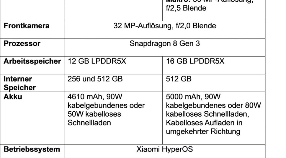 In der folgenden Tabelle kannst Du Dir einen Überblick über die technischen Daten des Xiaomi 14 und Xiaomi Ultra verschaffen: