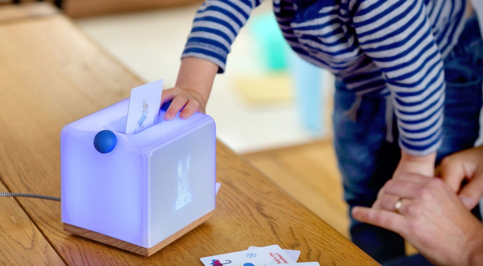 Yoto ist eine Box, mit der Kinder selbstständig Musik, Geschichten und Lerninhalte abspielen können. Für Kids leicht zu bedienen und für Eltern per Smartphone kontrollierbar. Im Sommer 2018 soll Yoto erscheinen.