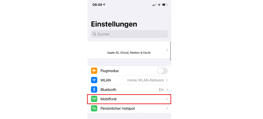 Öffne den Menüpunkt Mobiles Datennetzwerk. Und so geht's: