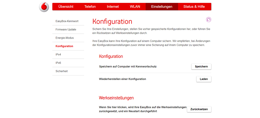 EasyBox auf die Werkseinstellungen zurücksetzen