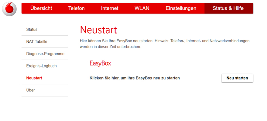 Wenn die TELEFON-LED rot blinkt, starte die EasyBox erneut. |