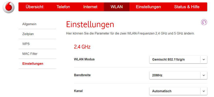 Empfangskanal oder Funkkanal von 5 GHz auf 2,4 GHz ändern