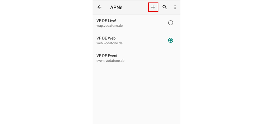 Tipp auf das Plus-Symbol, um einen neuen APN hinzuzufügen.