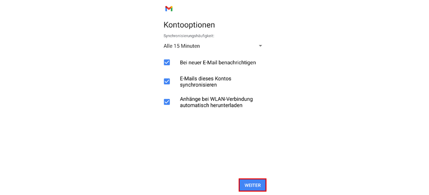 Wähl noch die Einstellungen zum Abrufen neuer E-Mails aus.