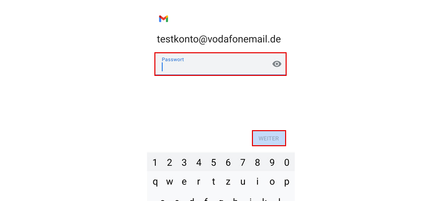 Gib Dein Vodafone E-Mail-Passwort ein.