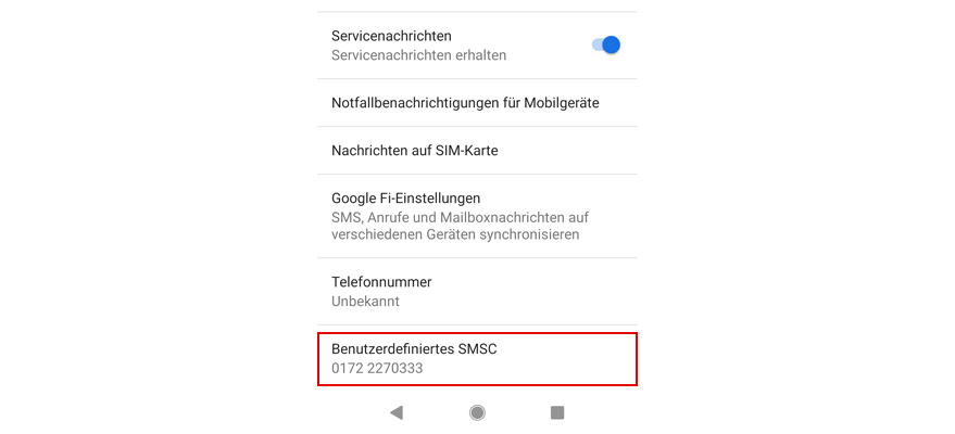 Gib jetzt die SMSC-Nummer +491722270333 ein.