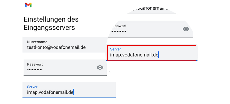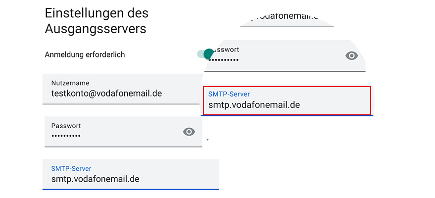 Gib unter SMTP-Server smpt.vodafonemail.de ein.