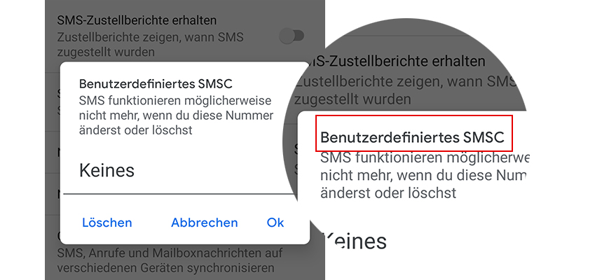 Die Einstellungen für das Benutzerdefinierte SMSC wird geöffnet.