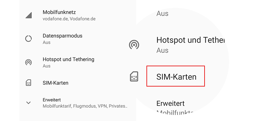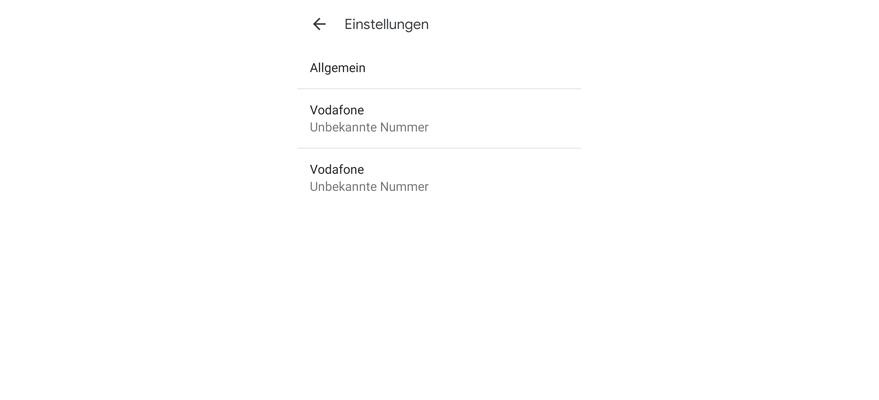 Wähl SIM 1 und SIM 2. In unserem Beispiel heißen die SIM-Karten Vodafone.
