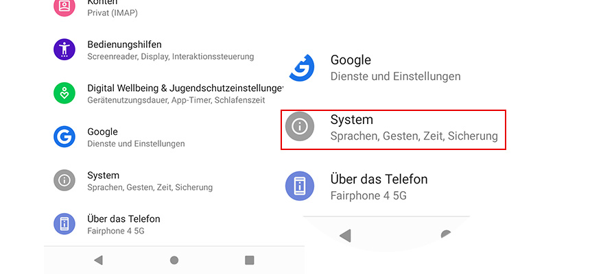 - Geh dazu auf Deinem Fairphone in die Einstellungen.