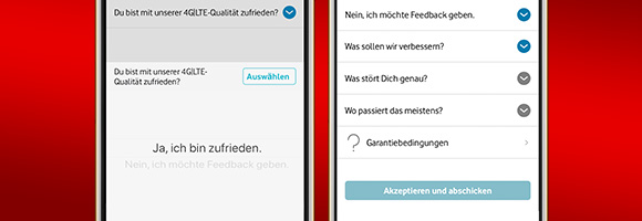 Langsames oder fehlendes Internet über Mobilfunk, DSL oder Kabel? Schick uns Dein Feedback über die MeinVodafone-App, wenn Dein Netz mal nicht wie gewohnt funktioniert. Du hilfst uns damit, immer ein bisschen besser zu werden.