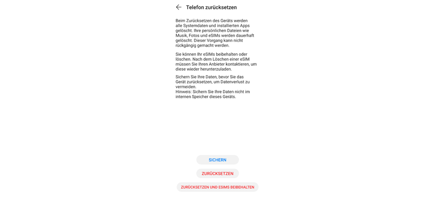 Du nutzt eine eSIM, dann wähl Zurücksetzen und eSIMs beibehalten.