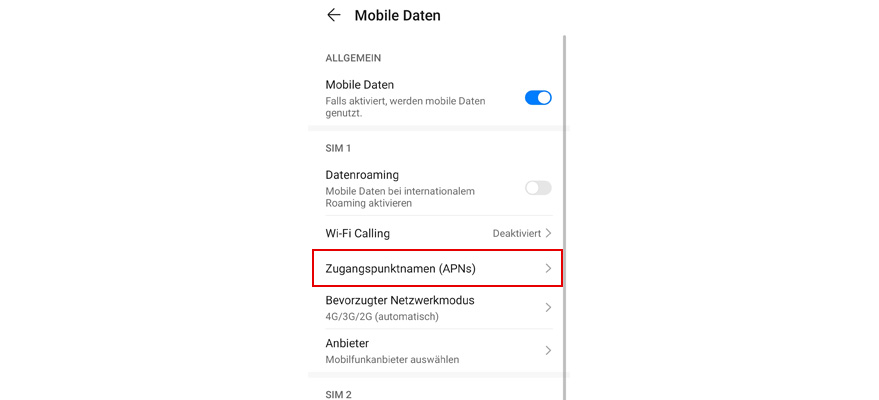 Wähl die gewünschte SIM-Karte aus.