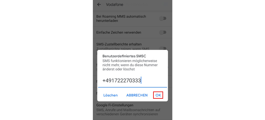 Wähl Benutzerdefiniertes SMSC.