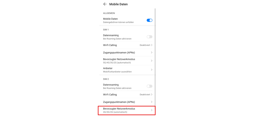 Wähl Bevorzugter Netzwerkmodus.