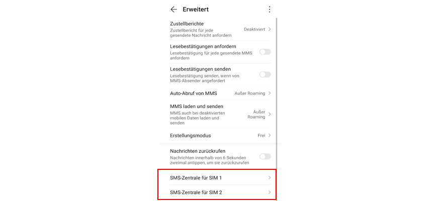 Nutzt Du zwei SIM-Karten, dann wähl jetzt SMS-Zentrale für SIM 1 oder SMS-Zentrale für SIM 2.